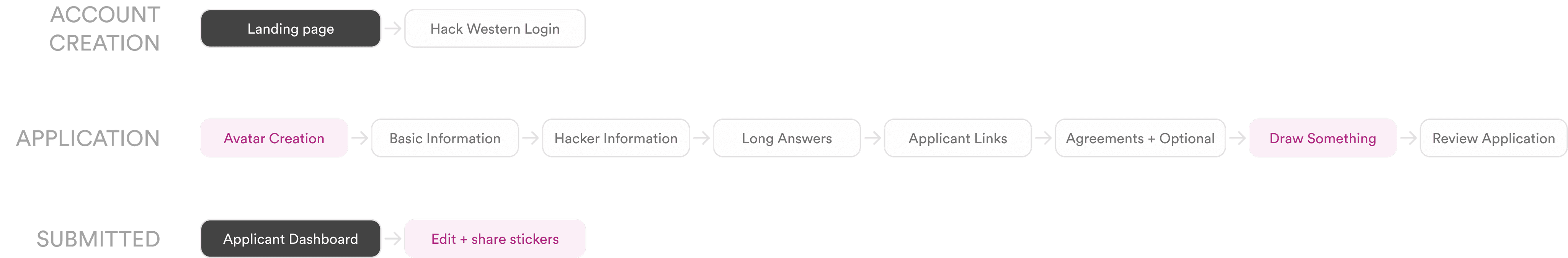 As a Design Organizer, I led the design of our Hack Western XII application portal, with the goal of making applying feel welcoming and fun.
