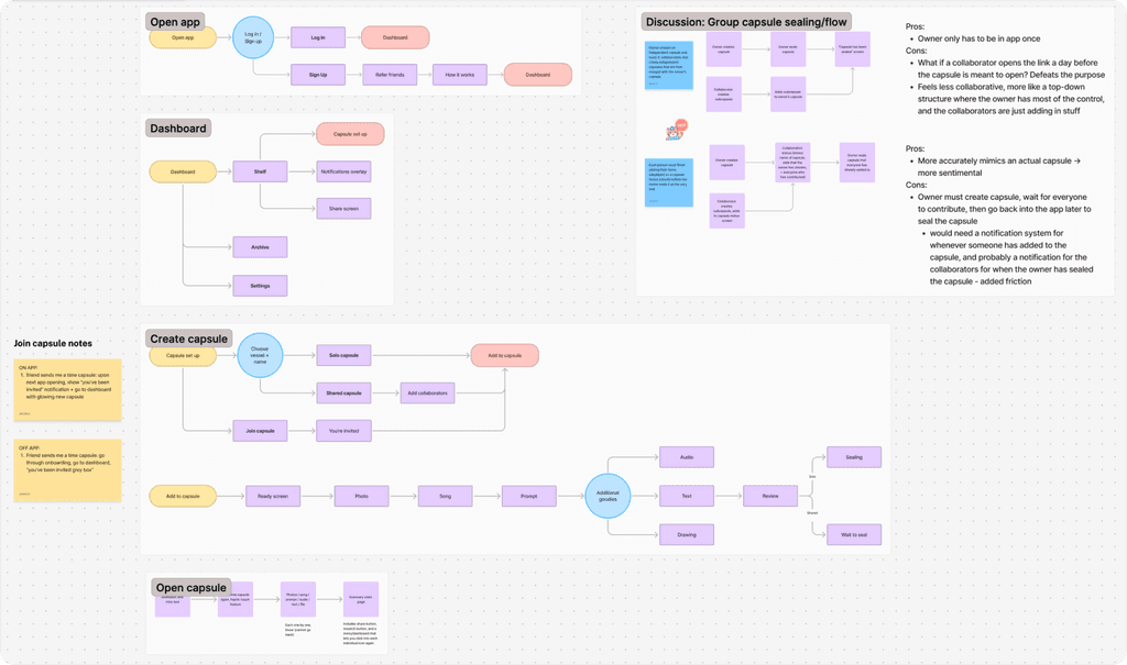 When exploring how collaboration should work for a shared time capsule, I identified two main user flow variations.