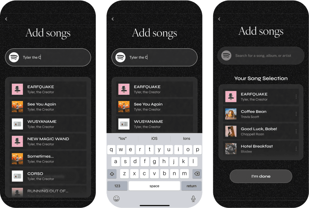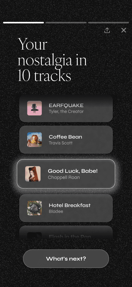 During user testing, participants said that while the carousel worked well for other media, it didn’t capture the overall "feeling" of a group of songs together. They wanted to see multiple tracks together, similar to how playlists feel. Based on this insight, I used a list view for songs instead of the carousel.