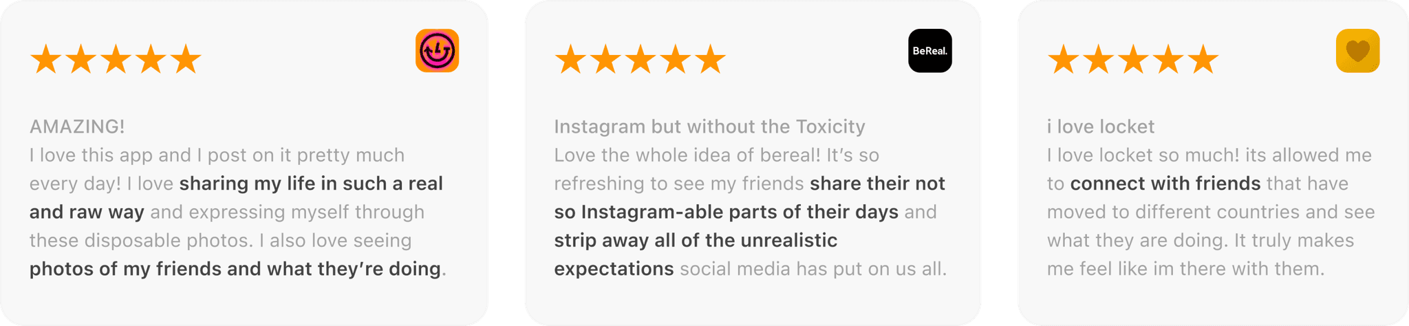 App Store reviews for Lapse, BeReal, and Locket