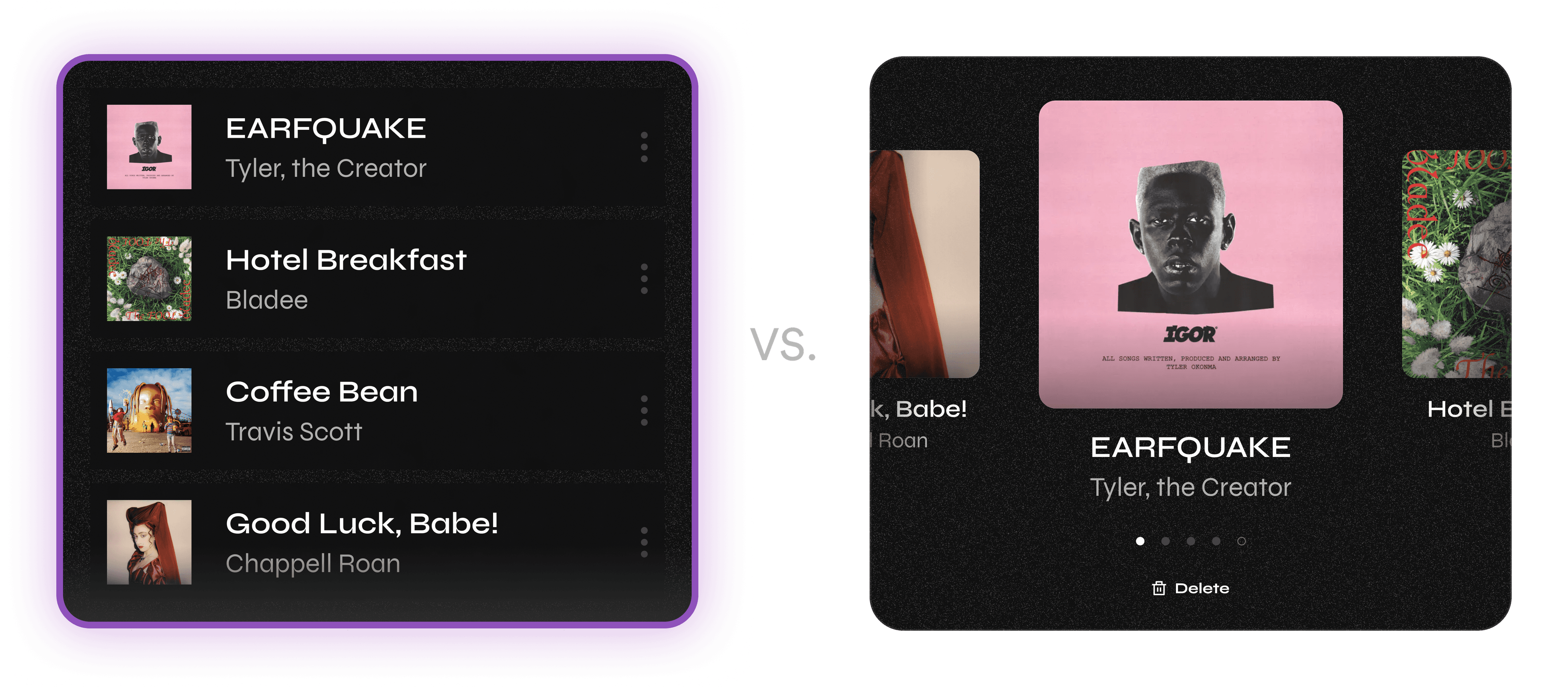 Songs: list vs. carousel view comparison